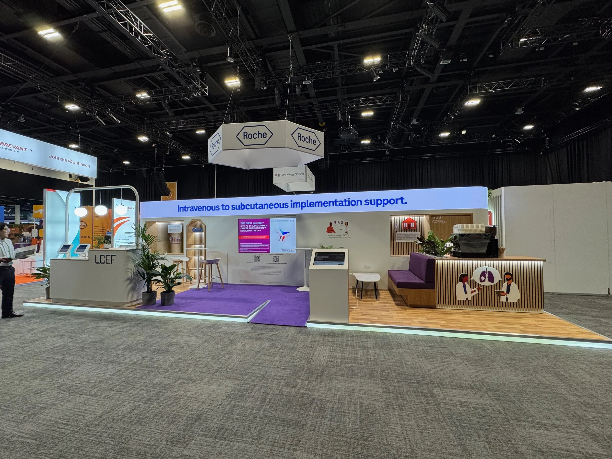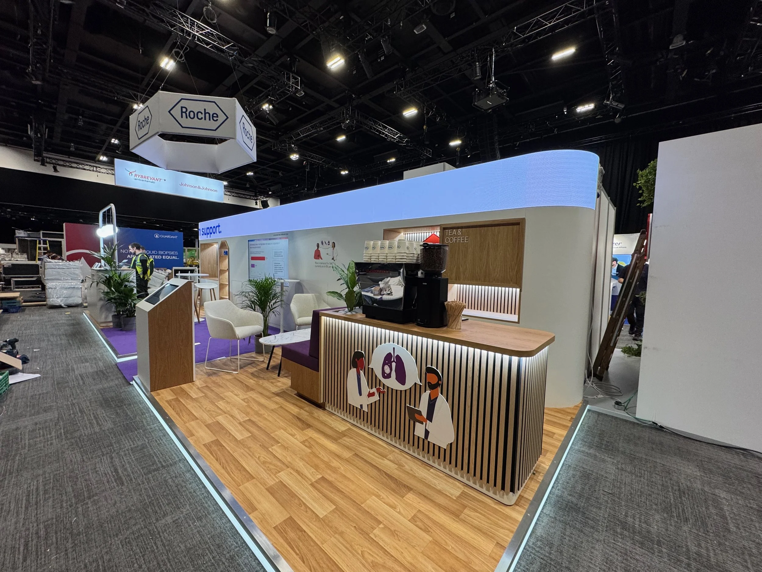 Striking Presence for a Leading Event, Commissioned by Roche for BTOG 2025, this stand delivered a clean, modern look with well-defined spaces for networking, presentations, and informal meetings. Designed to reflect the brand’s proffesional tone, it provided an engaging and welcoming enviroment for delegates throughout the event.